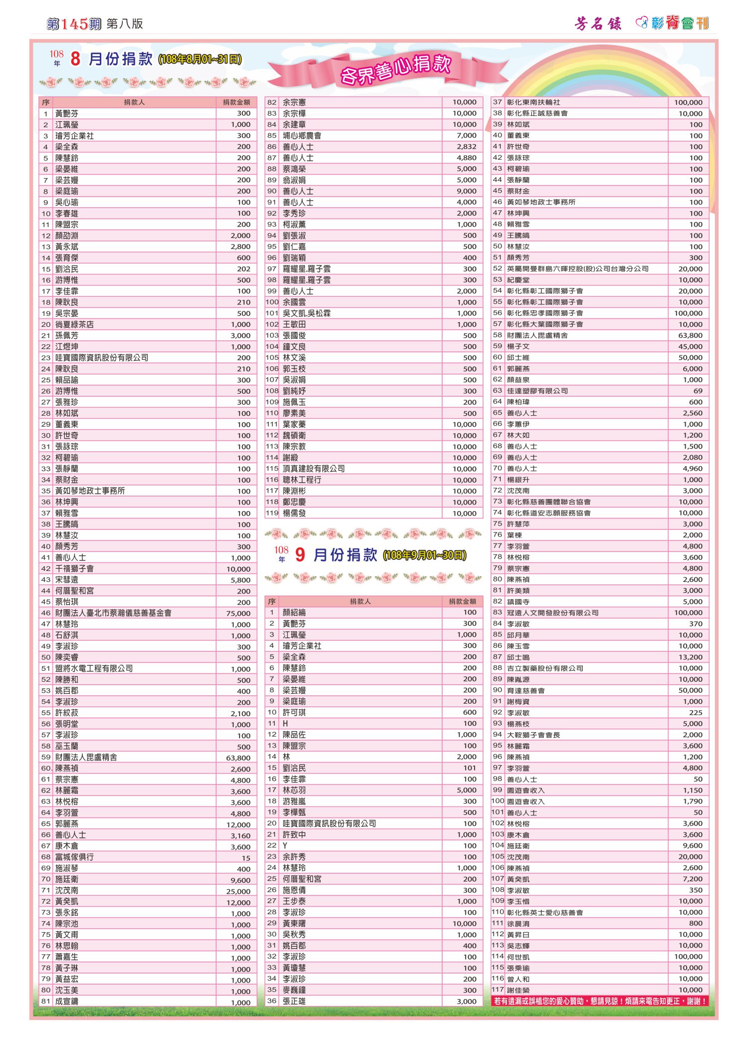 公益勸募捐款芳名錄